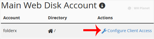 3. Under Main Web Disk Account, click on Configure Client Access.